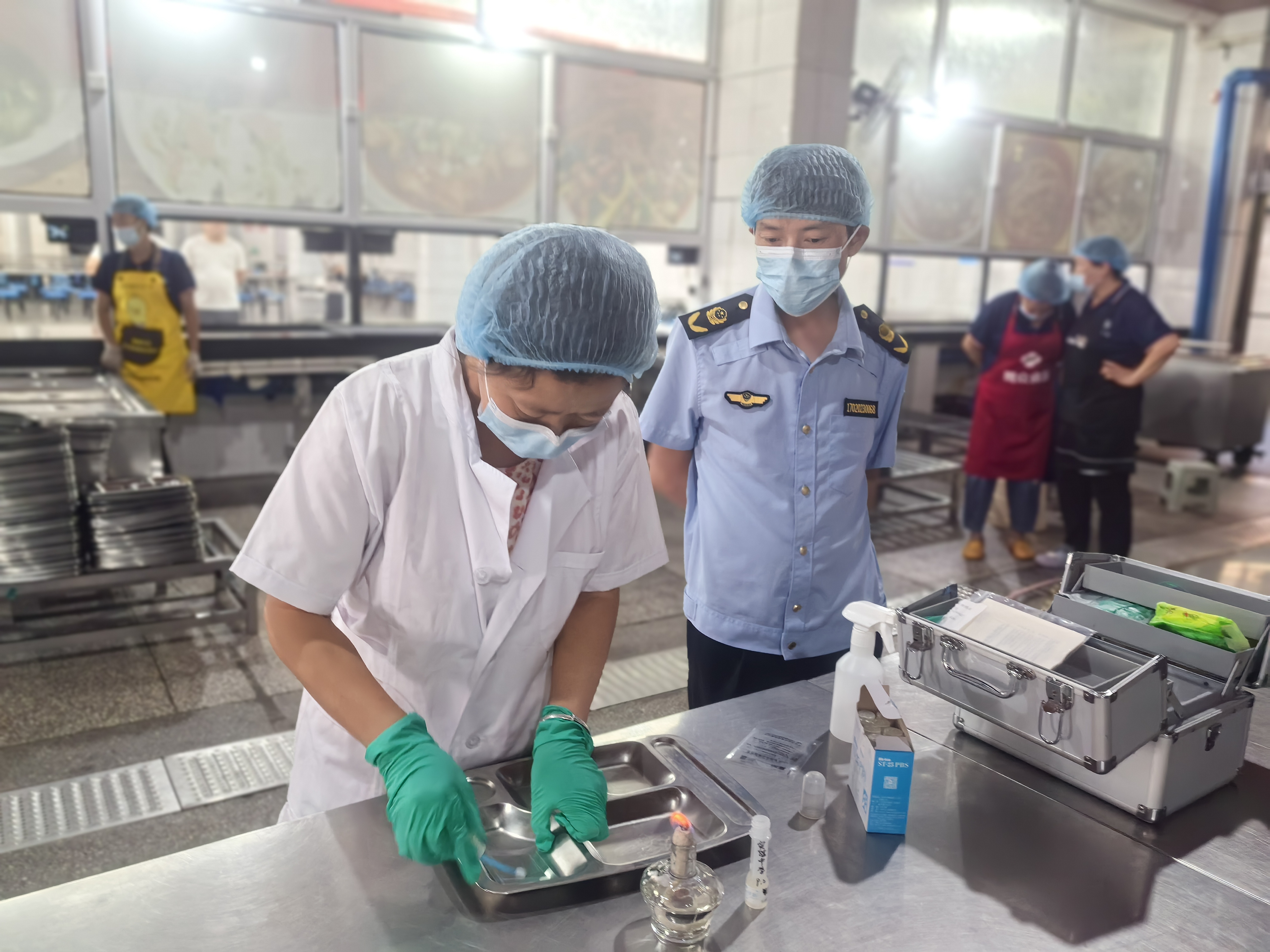 此次专项整治聚焦校园食堂及供餐单位,以“查隐患、堵漏洞、强管理”为核心,联合公共检测中心对餐盘、碗、筷子等餐饮具开展随机抽样检测,严防不洁餐具引发食源性疾病;逐一核查食品经营许可、从业人员健康证、食材供应商资质等文件,确保全链条合规;重点检查食堂是否在显眼位置公示食材来源、采购凭证及从业人员健康信息,推动信息透明可监督。